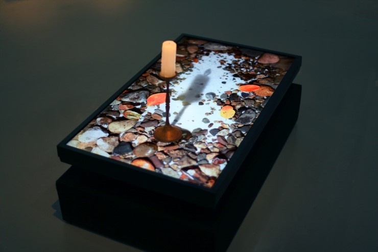 하광석, Reality-Shadow #2-3, Digital Video & Sound,LCD, Bronze Candlestick, Candle, 110x66x60cm, 2009